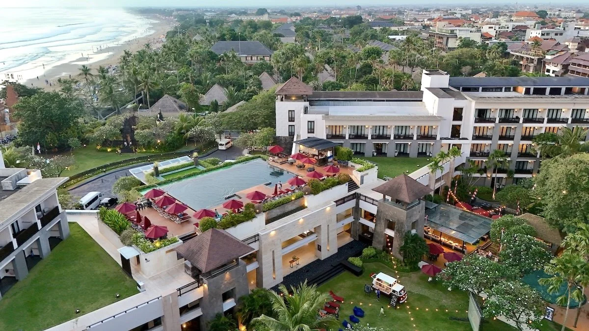 Nestled at the serene intersection of Kuta and Legian Beaches, Pullman Bali Legian Beach is a beachfront paradise that seamlessly blends sun-kissed relaxation with contemporary elegance. Proudly awarded the prestigious Green Globe Certification for its sustainable hospitality and tourism practices, the resort features 365 beautiful and spacious rooms and suites, each offering captivating views of the lush gardens, inviting pools, or the sparkling ocean. The resort’s prime location ensures that guests are immersed in natural beauty while enjoying modern comforts. Guests can indulge in a variety of amenities, including the expansive Alun-Alun Garden, Montage - All Day Dining, three vibrant Bars, an Infinity Pool, a tranquil Garden Pool, a Kids Pool for family fun, a well-equipped Gym, a rejuvenating Spa, and a dedicated Kids Club. For business travelers, there are nine versatile Meeting and Function Rooms, including a grand ballroom, perfect for conferences and events. Conveniently located just a 15-minute walk from the renowned Beachwalk Shopping Center, Pullman Bali Legian Beach promises an unforgettable escape where modern design harmoniously meets the natural beauty of the surroundings.